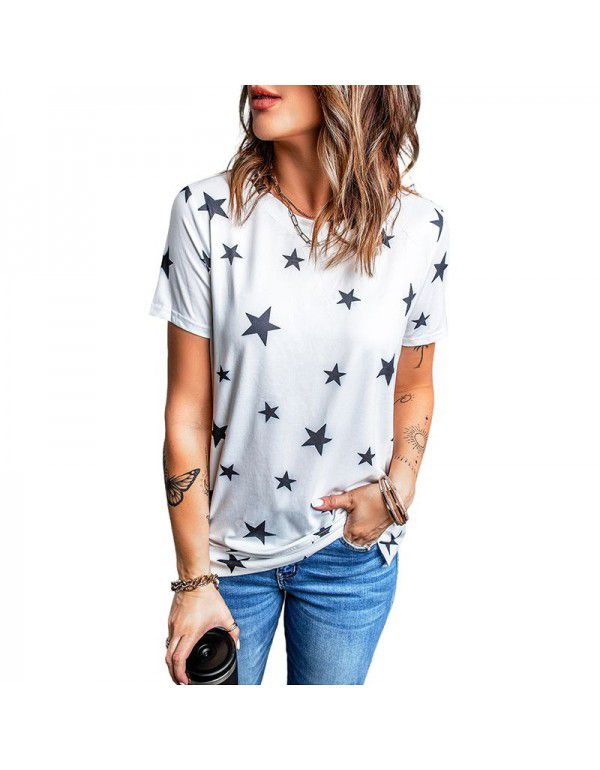 Shiying Short Sleeve T-shirt Women's European Summer New Stripe Pattern Women's Loose Round Neck Top Women