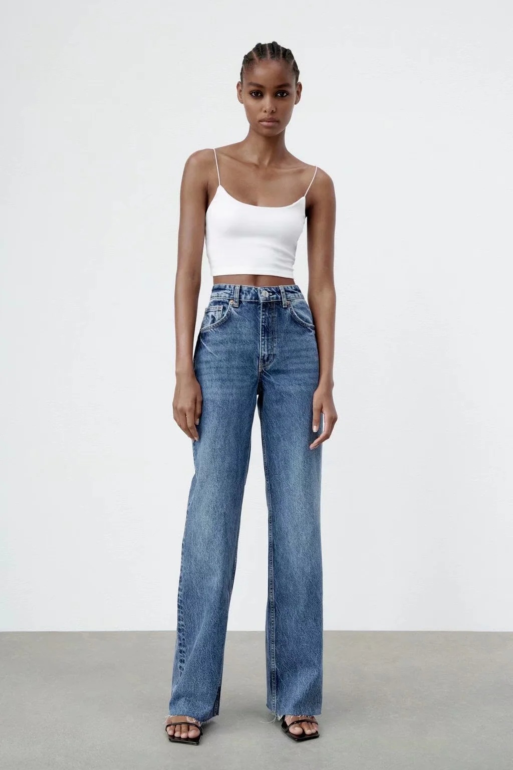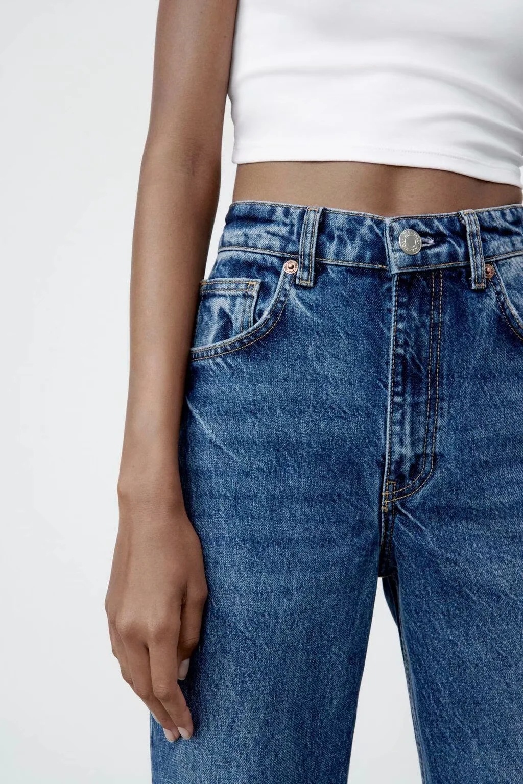 Leisure fashion retro high waist jeans autumn women's trousers loose show thin show leg long hair edge wide leg pants